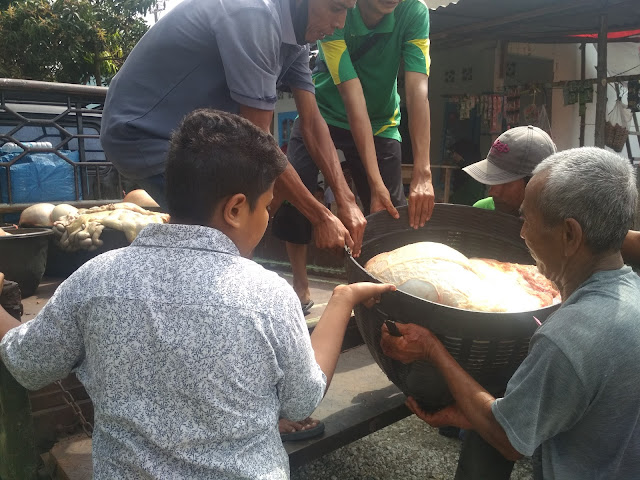 Penyembelihan, pemotongan hingga pembagian daging hewan qurban dilaksanakan di lapangan fasum RT02 dan RT04, Selasa (20/07/21).