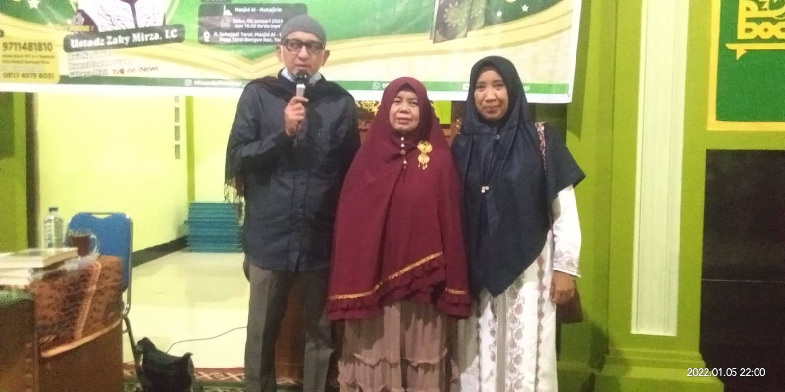 Ustadz Zacky Mirza, Lc isi kajian di masjid, jamaah ramai memenuhi masjid, mereka pada semangat, antusias dan penuh perhatian mendengarkan ceramah dan rebutan berfoto diakhir acara. Rabu bada Is’ya (5/01/2022).